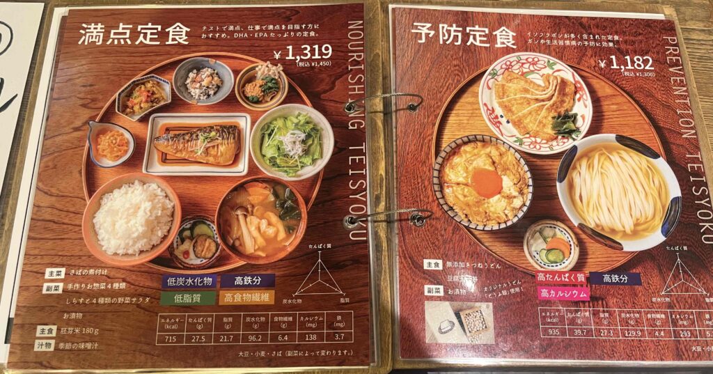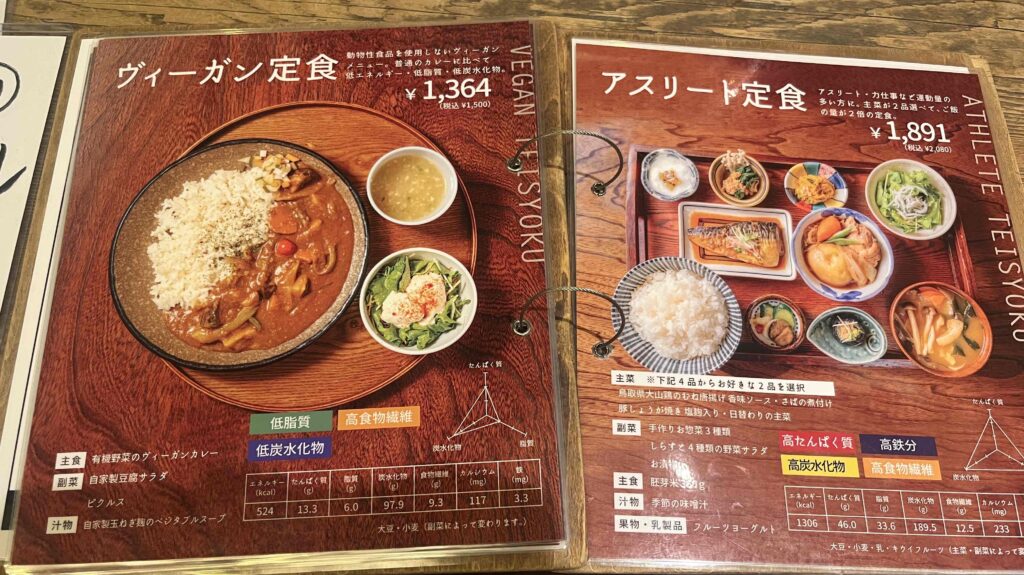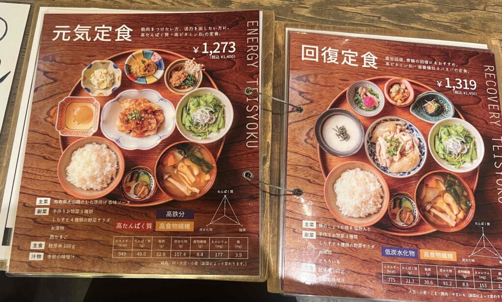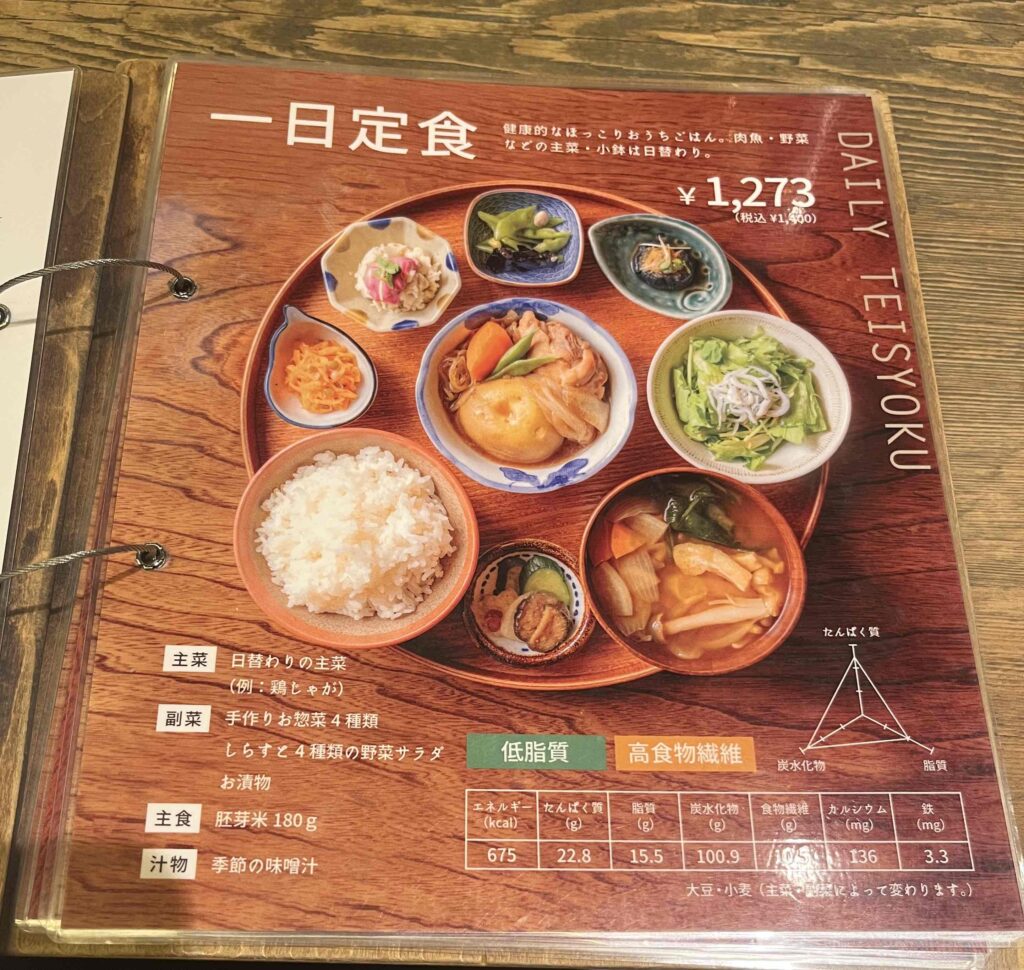 様々な定食があるので、メニューも載せておきます!メニューには栄養素が記載されているので、ダイエットをされている方にとっては嬉しいかもしれませんね!