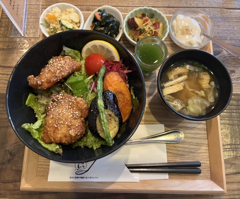 ※下記は西梅田店の「健康鶏の甘辛玄米丼」です。