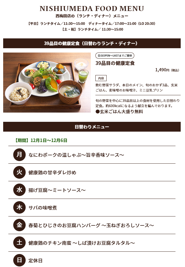 ※下記は天王寺ミオプラザ館店の「二十四節気の健康定食」です。